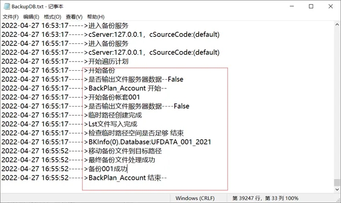 1、查看日志,提示最终备份文件处理成功,说明自动备份正常。