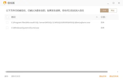 3、如有杀毒软件需将CMD.EXE和SQLSERVER.EXE添加为信任文件。