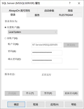 SQL服务的账号设置为本地账号