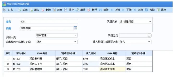 ² 同一辅助核算组合的转出科目即使有多个,结转比例也必须是一致的