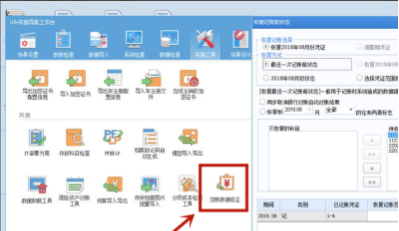 1. 点击“总账数据修正”图标,弹出“恢复记账前状态”对话框。