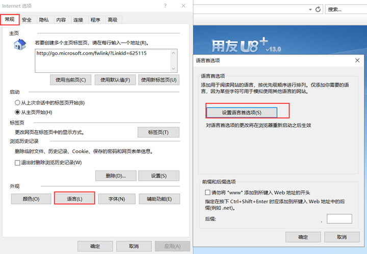 1、打开浏览器的“Internet选项”窗口,在常规选项卡上,点击【语言】按钮,点击“设置语言首选项”