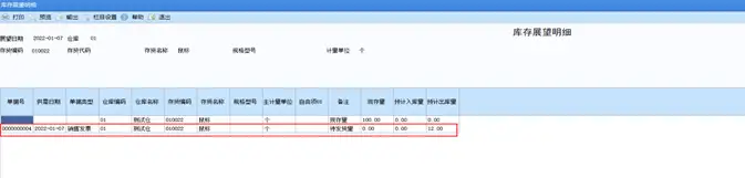 (3)双击库存展望查询出来的记录行,查看库存展望明细。