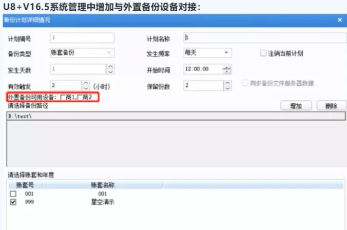 U8+V16.5版本通过友数安,支持将账套异机备份至安全设备;