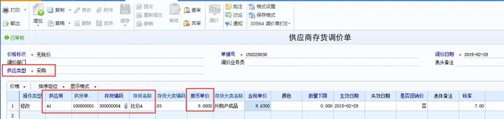 1、 维护供应商存货调价单,调价单审核后传入供应商存货价格表;