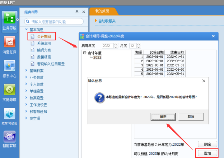 除出纳外,其他需结账的模块产品12月结账后,如果下一年度会计期间不存在,系统会自动创建下一年度的会计期间。