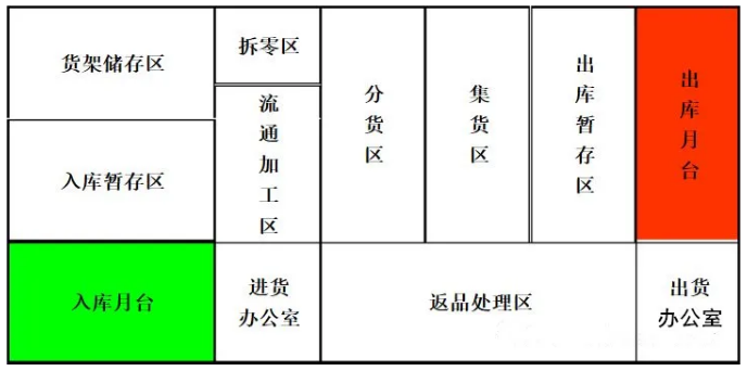 在仓库管理中,我们一般认为主要的工作包括:货物验收入库、储存保管、流通加工、备货拣选、出库发货等,而安排这些工序的位置,决定了一件货物在仓库的运动路线。这就是所谓的仓库物流动线。