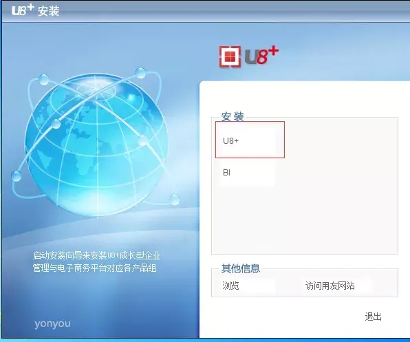 2、弹出安装界面后,选择u8+安装