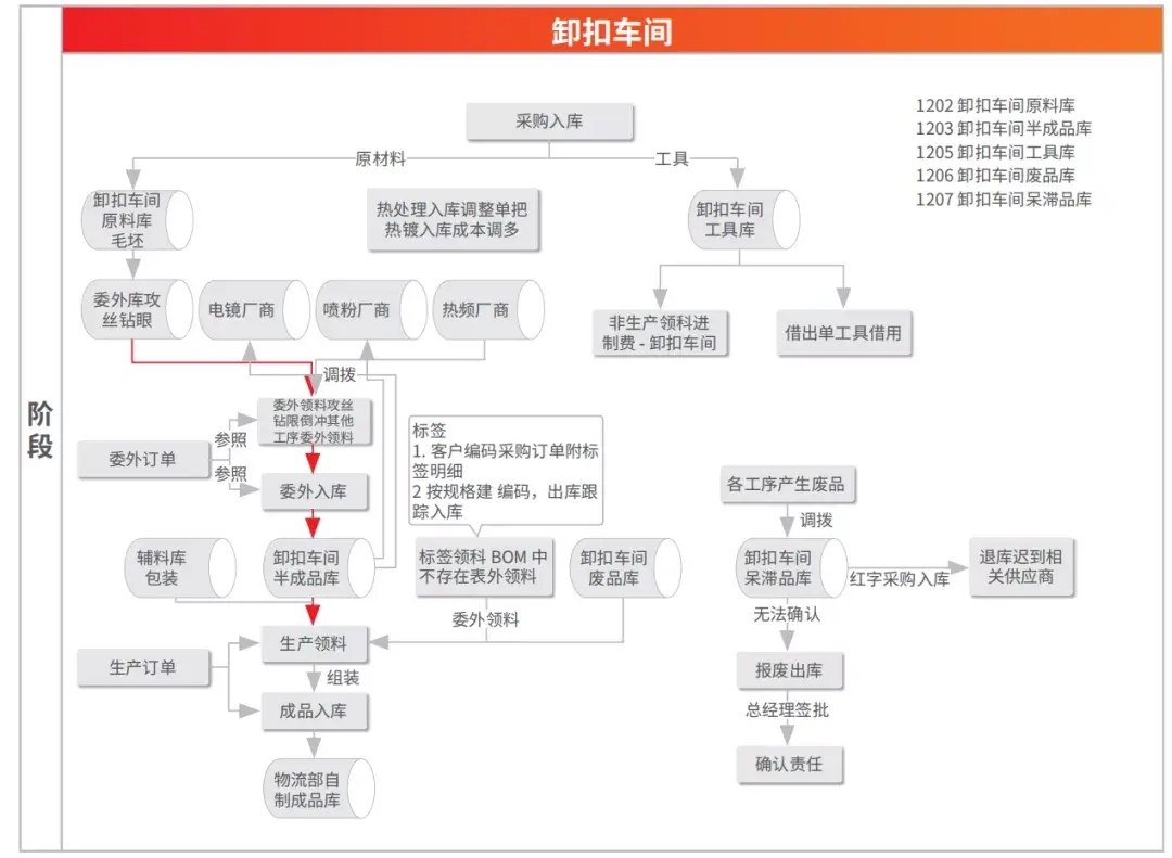 不同车间不同委外流程,利用货位来管控每批委外材料。