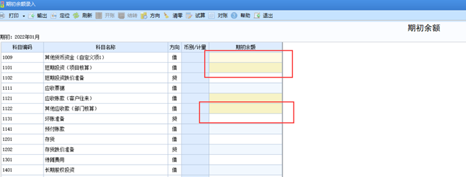 Ø 部门、项目核算、自定义核算科目录入期初余额