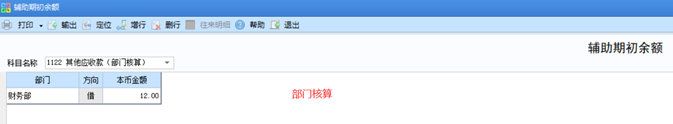 2.点增行,录入各项目/部门/自定义项的期初余额;