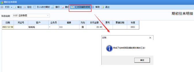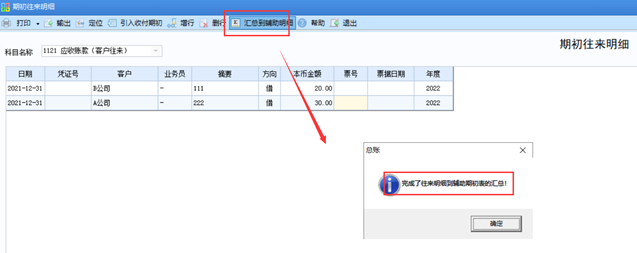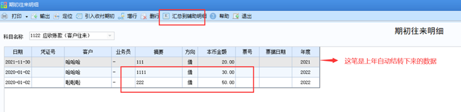 这是因为应收账款科目是按明细导入的,需要在往来明细里,做下汇总到辅助明细的操作,期初余额就会显示了。