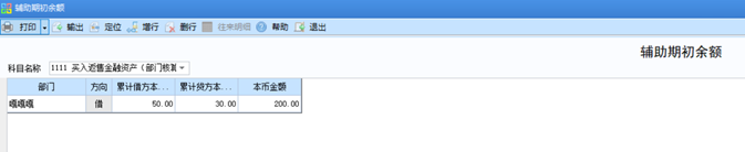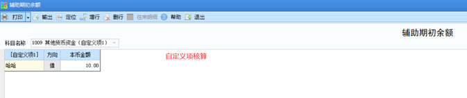 3.录入完之后退出,可以在辅助期初余额界面看到汇总后的数据,在期初余额界面可以看到总的期初余额。