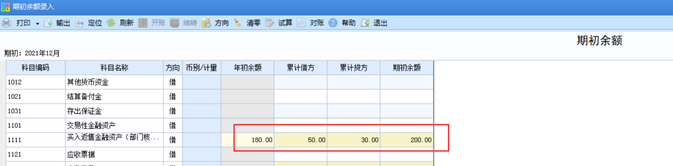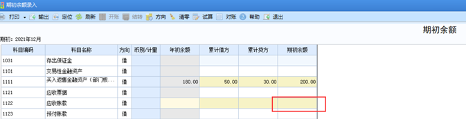 4.录入完之后退出,可以在期初余额界面看到年初余额被反算出来。