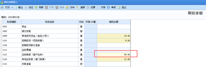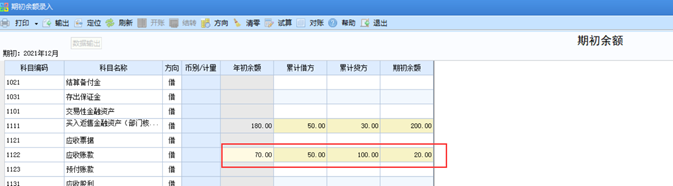 3.录入完之后退出,可以在期初余额界面看到年初余额被反算出来。