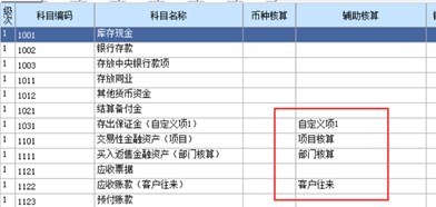 Ø 辅助核算类型:没有挂任何辅助核算的科目选择的0;挂了项目、部门、自定义项核算的科目选择1,