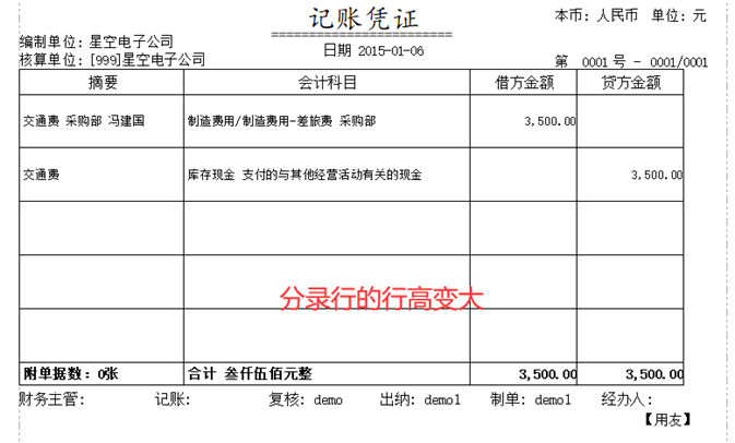 例:将分录行的行高调大 凭证打印-设置-详细格式设置-表体设置,表体行-行高