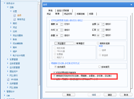 2、 启用新打印控件打印当凭证、账簿打印格式需要进行调整时,可启用新打印控件打印后进行详细格式设置 注:当凭证套打且纸型为发票版和用友7.1时不支持使用新打印控件打印,勾选后也不会有详细格式设置。