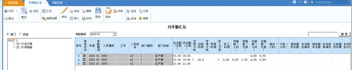 月考勤汇总可以根据考勤期间的起止时间和每天的出勤记录,结合排班、加班、请假、出差情况汇总该考勤期间的所有考勤项目,并且支持手工修改和导入便于灵活调整考勤数据