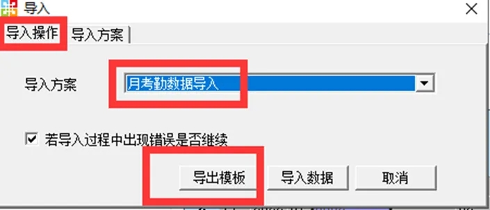 D、切换到“导入操作”页签,选择导入方案,点“导出模板”