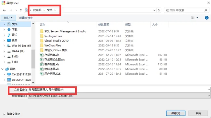 E、选择导出路径,点“保存”,弹出提示“模板导出成功”,点“确定”
