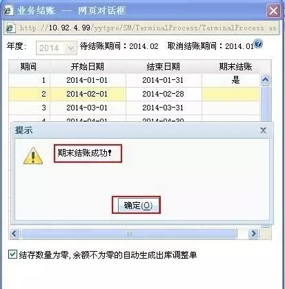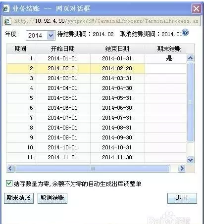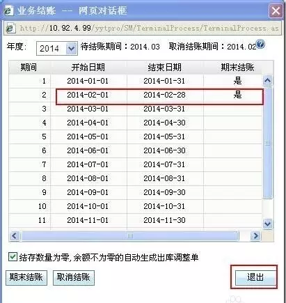 4、可以看到对应的会计期间“期末结账”已经打上“是”的标志。点击“退出”即可。