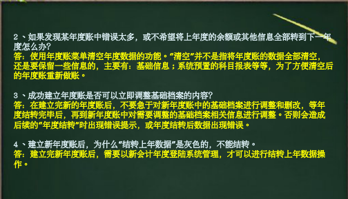 答:在年度结转过程中,有一个提示,是否选择清零项,一定选择“是”,并且把所有项目都要选择清零。这样的话,新的年度才能删除工资项目和人员档案,否则的话,会把人员的工资项目数据带过来,不能删除。