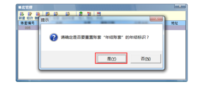 删除新年度账套后,还需要在账套管理中选中上年账套,按快捷键CTRL+L重置年结标识,才能重新选择到账套年结。