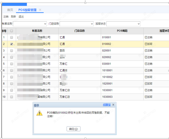 3.1如果注销pos加密管理的pos是已经不存在于账套中,需要执行脚本处理修复