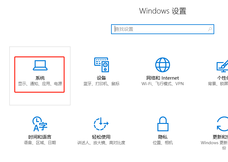 1、进入Windows设置,选择系统;
