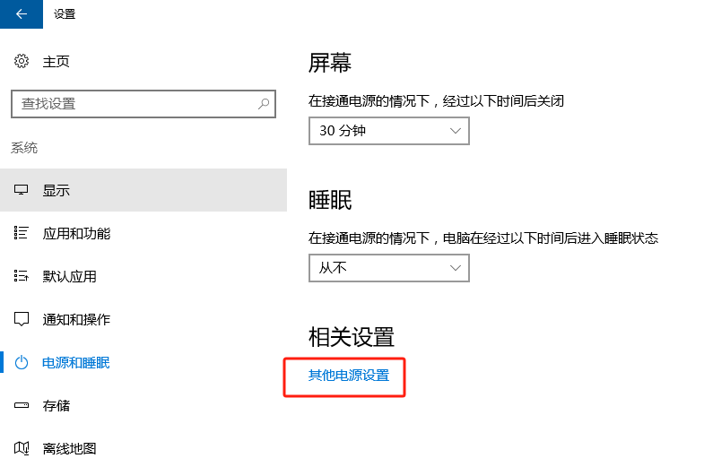 2、选择电源和睡眠;