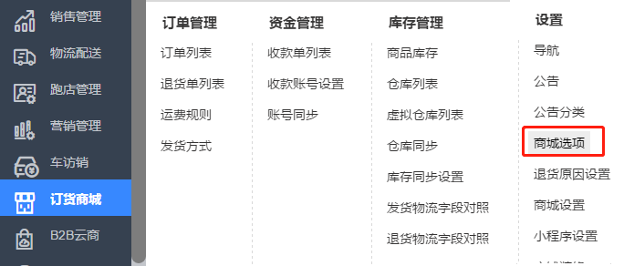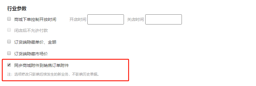 1、打开【订货商城】-【商城选项】,启用【销售订单附件同步】功能,