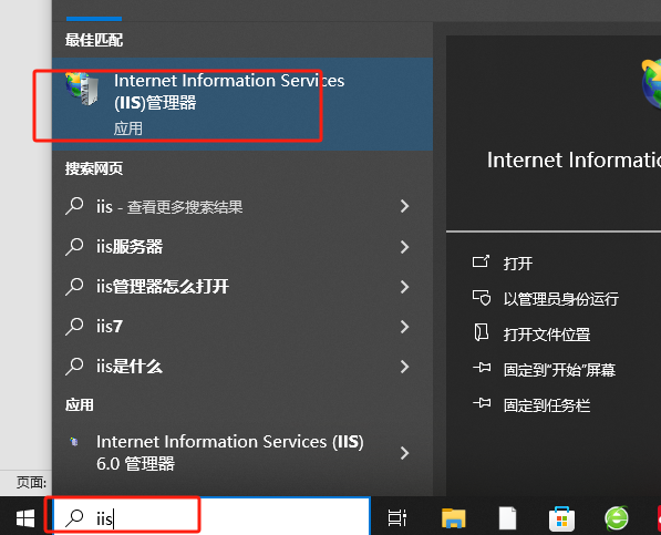 步骤一:电脑开始中输入iis,回车即可弹出页面,显示iis管理器