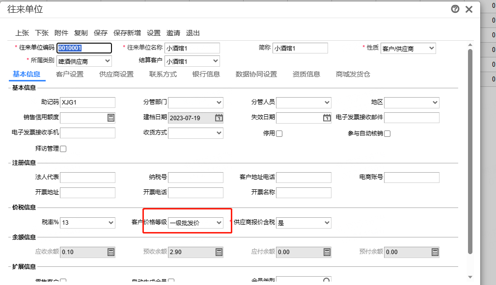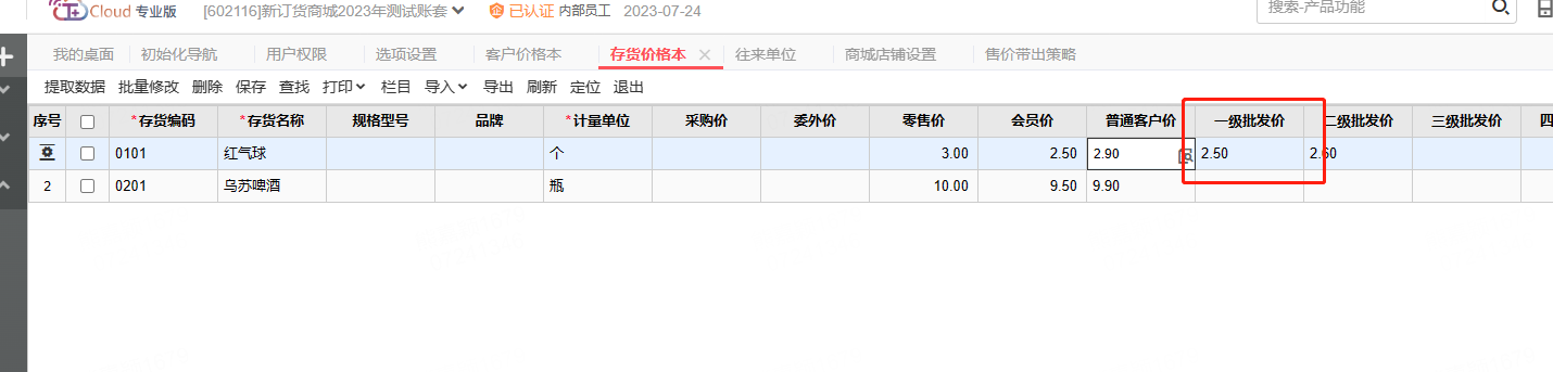 往来单位设置了批发等级价,存货价格本也是维护好的,客户登录商城,显示的不是对应等级价,显示的是普通客户价