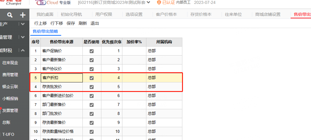 售价带出策略要把客户折扣勾选上,并且优先级调整到【存货批发价】之前