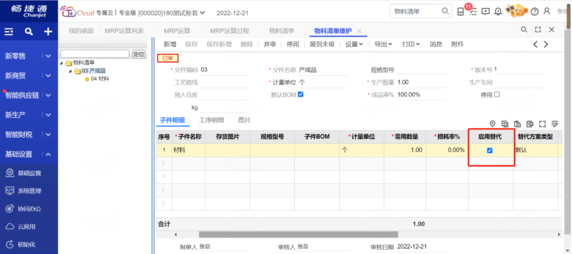 详细举例:1.【产成品】子件是【材料】,【材料】的替代件是【材料替代件】;