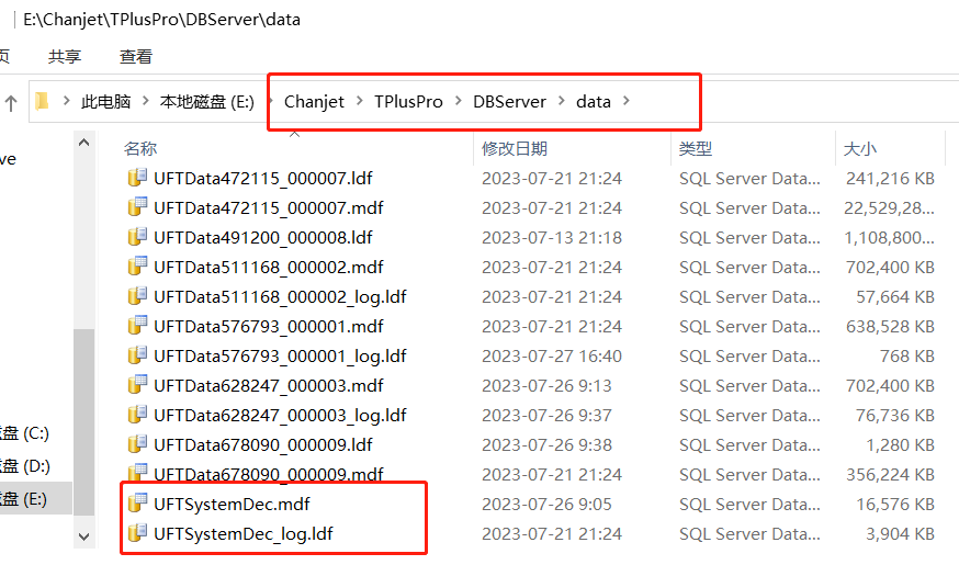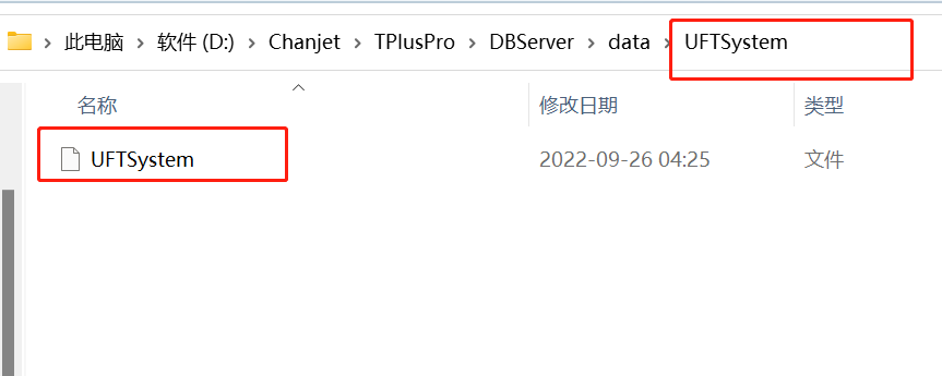 3.在软件安装路径\Chanjet\TPlusPro\DBServer\data\UFTSystem文件夹下缺少了UFTSystem文件。