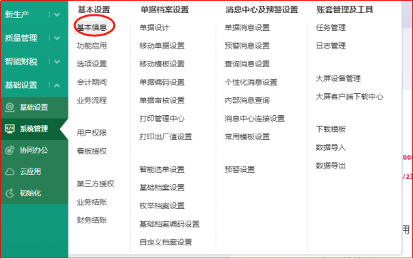 1、系统管理-基本信息中填写好用户的单位全称、账套名称、税号、报税地区、纳税人性质等,