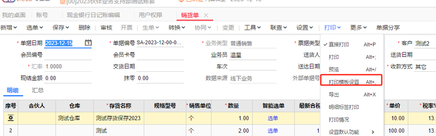 步骤一:进入单据打印模版设置,