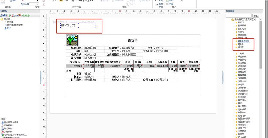客户想要在单据上查看到打印出的单据是第几页,一共打印了几页,如何设置呢