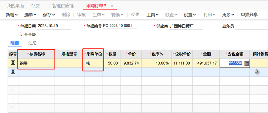 在做采购时默认单位是吨,做材料出库时默认为米,并且支持自动换算