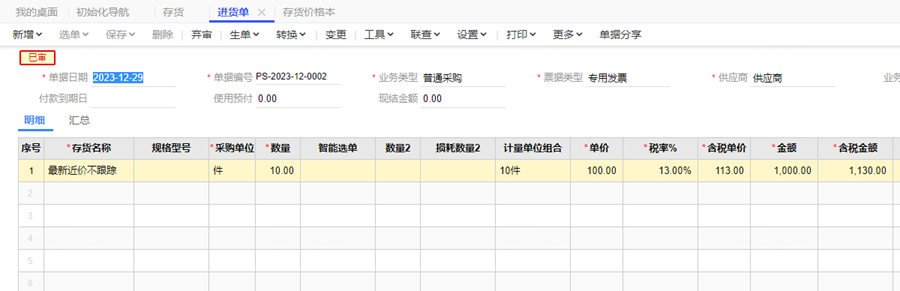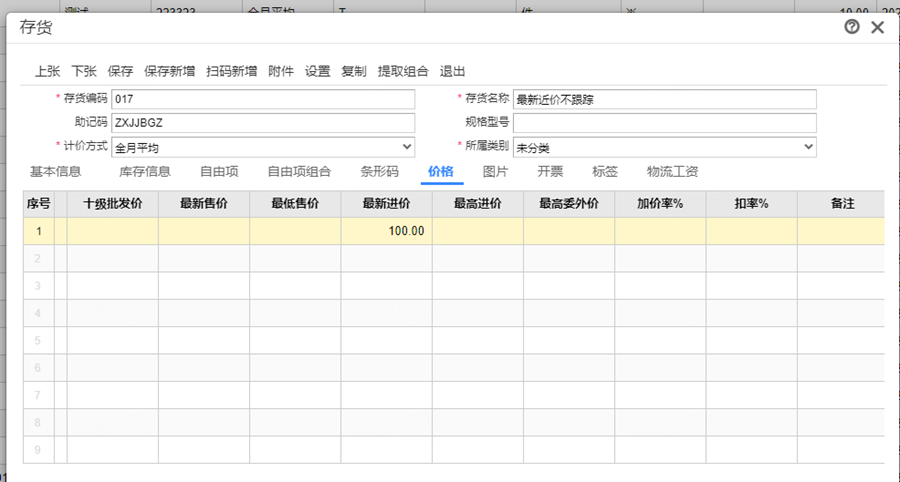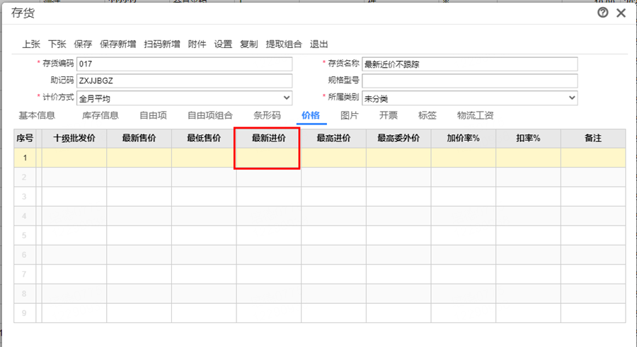 存货做了进货后查询存货最新进价不显示