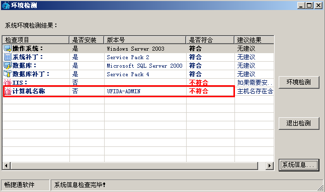 【问题现象】安装用友通软件时在环境检测步骤提示:计算机名称不符,该如何处理?