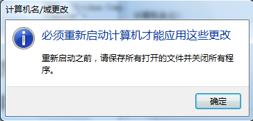 3、系统会提示需要重新启动计算机,点击“确定”,重新启动电脑就更改好计算机名称了。如下图所示: