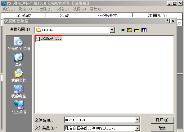 进入系统管理,将ZT003的输出文件进行账套恢复