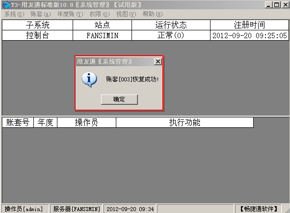 账套恢复成功
