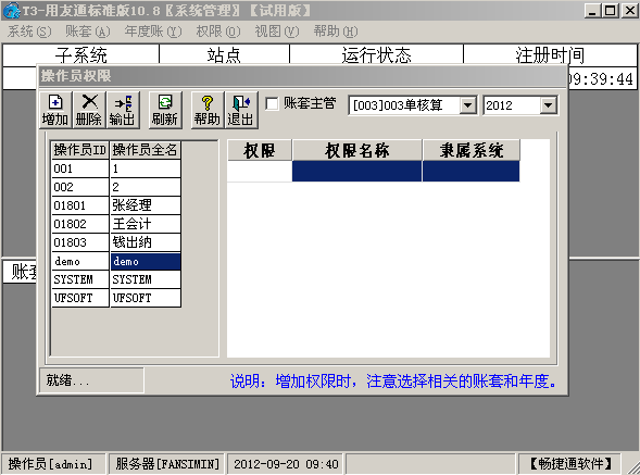 在系统管理中进行ZT003账套主管权限的设置