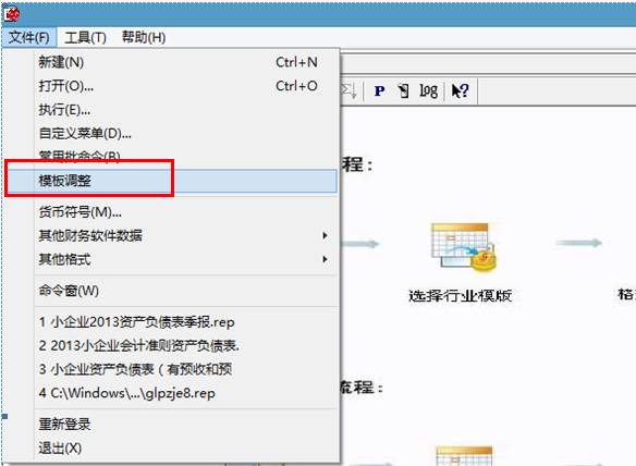 1、打开财务报表模块,点击左上角“文件”下面的“模板调整”: