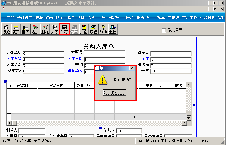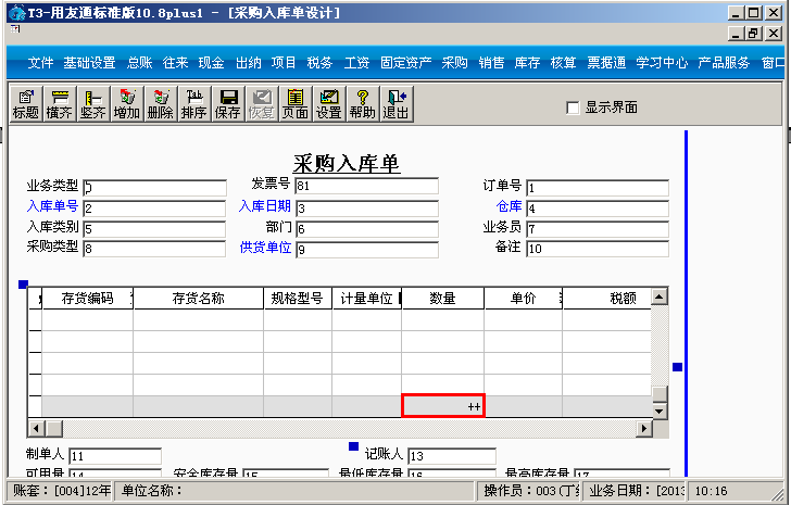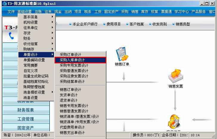 1、点击“基础设置”—“单据设计”—“采购入库单设计”