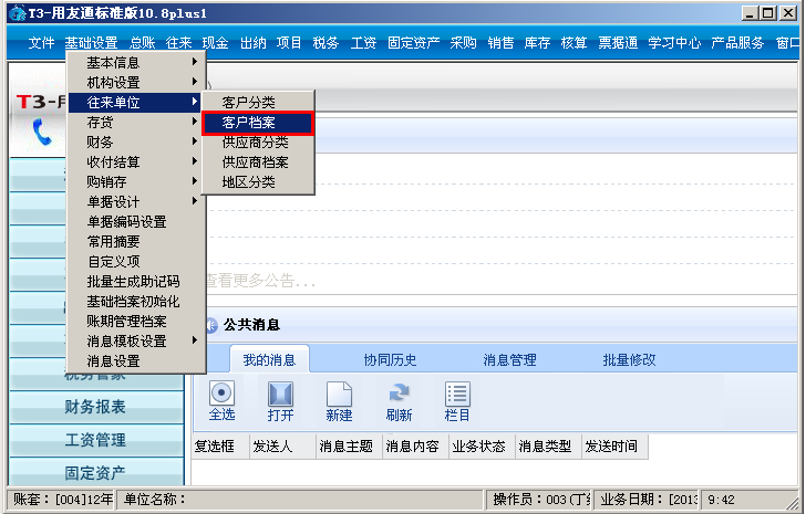 3、点击“基础设置”—“往来单位”—“客户档案”